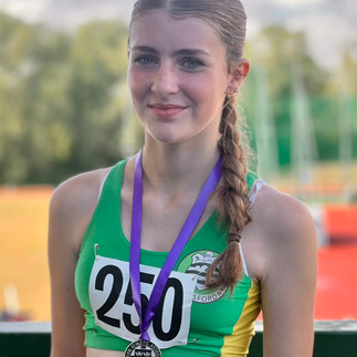 From the boys it was another success for Harry Lee over the 100m hurdles in 13.37s whilst Marcus Fazackerley took the bronze medal. For under 20`s Alastair Brown a 16.70m gave him the senior title whilst for Jordan Lacey. Classified in the disabled group `T20` there was gold in the 1500m and silver at the 800m. Back to the under 15`s and Hector Johnson placed second in the discus with 28.19m then achieved a pb from the javelin 30.24m. Bevan Dove had placed fourth in that discus event but with the hammer his 36.71m took third. On the track Toby Tubbs was another to finish in second spot, over the 300m with 43.00s.